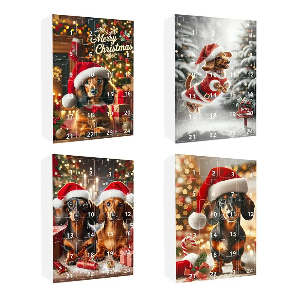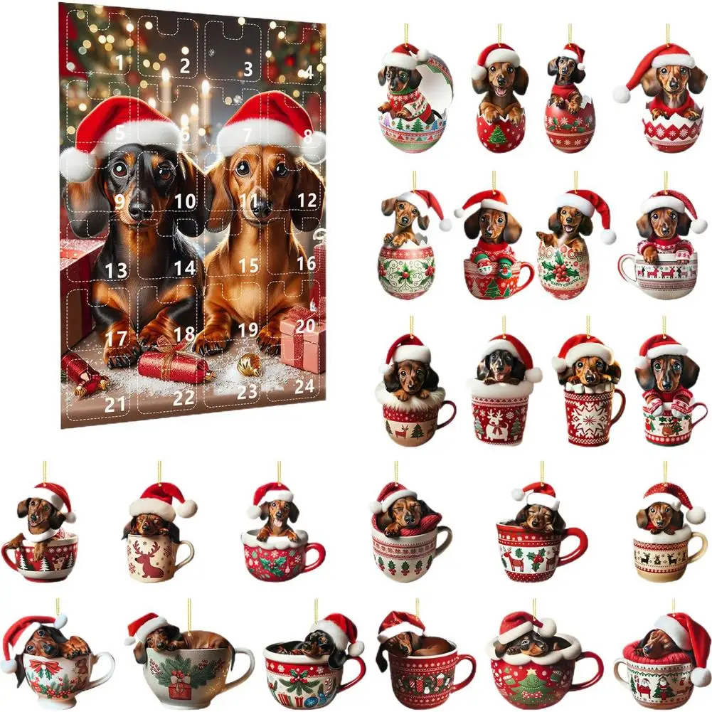 Adventskalender mit 24 2-D-Dackelanhängern in verschiedenen Ausführungen