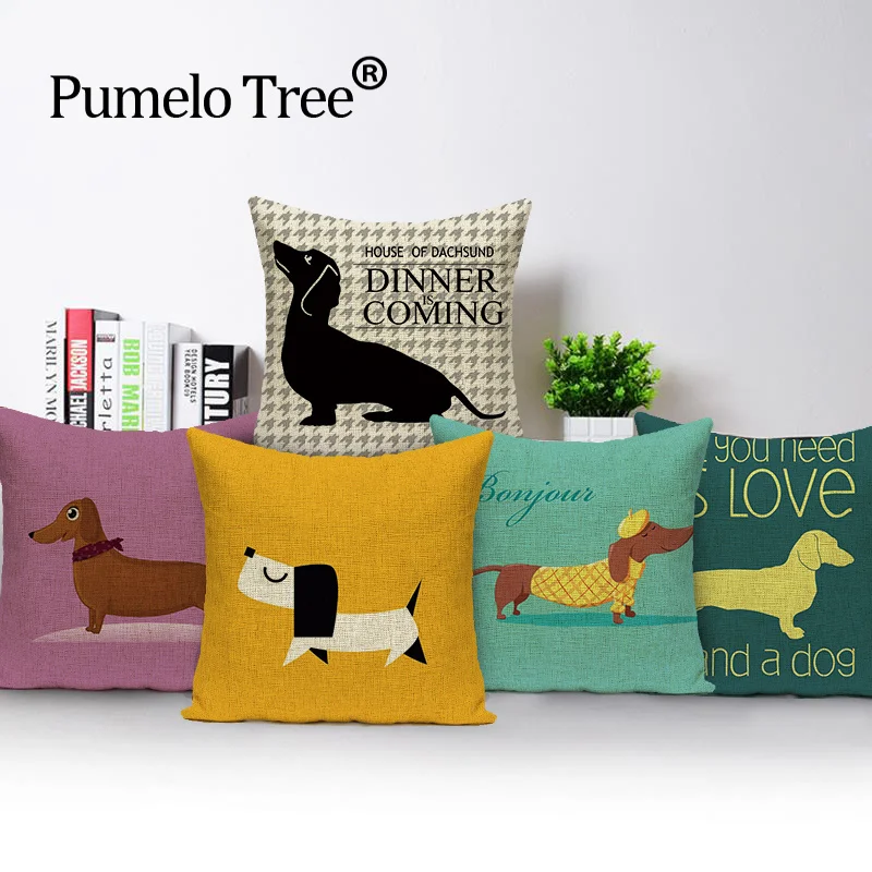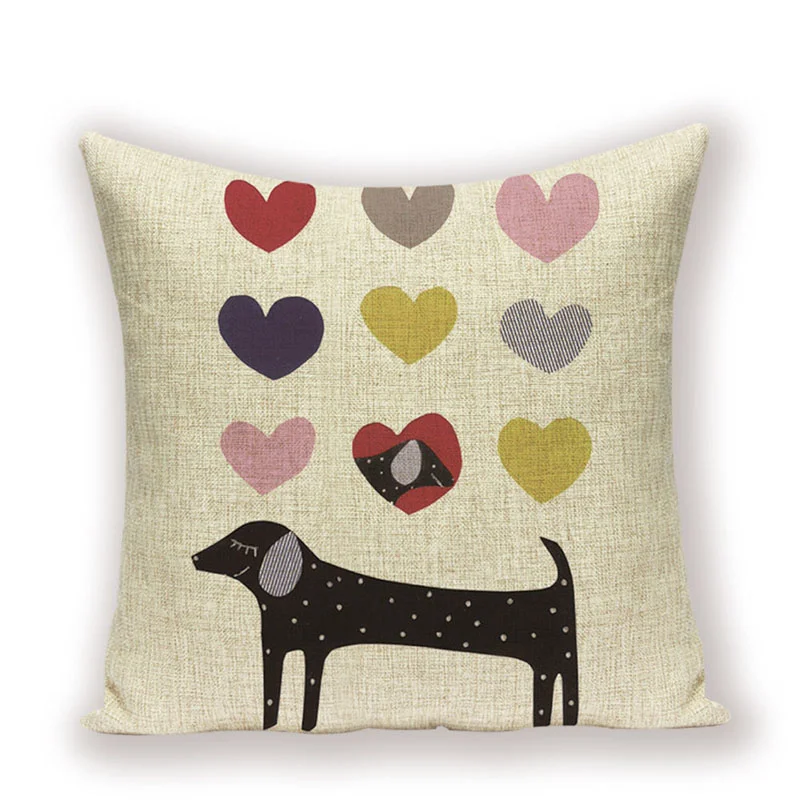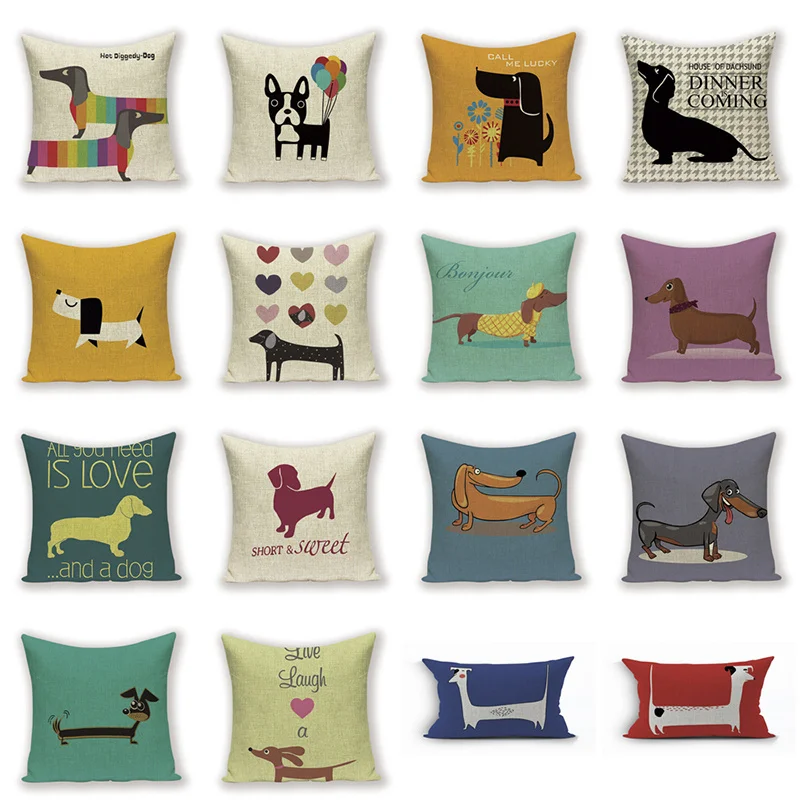 Mit diesen freundlichen Kissenbezügen mit verschiedenen Dackelmotiven werten Sie Ihr Heim auf