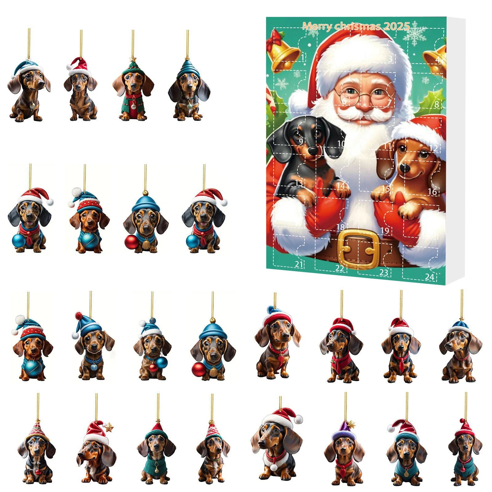 Adventskalender mit 24 süßen Acryl-2D-Dackelanhängern