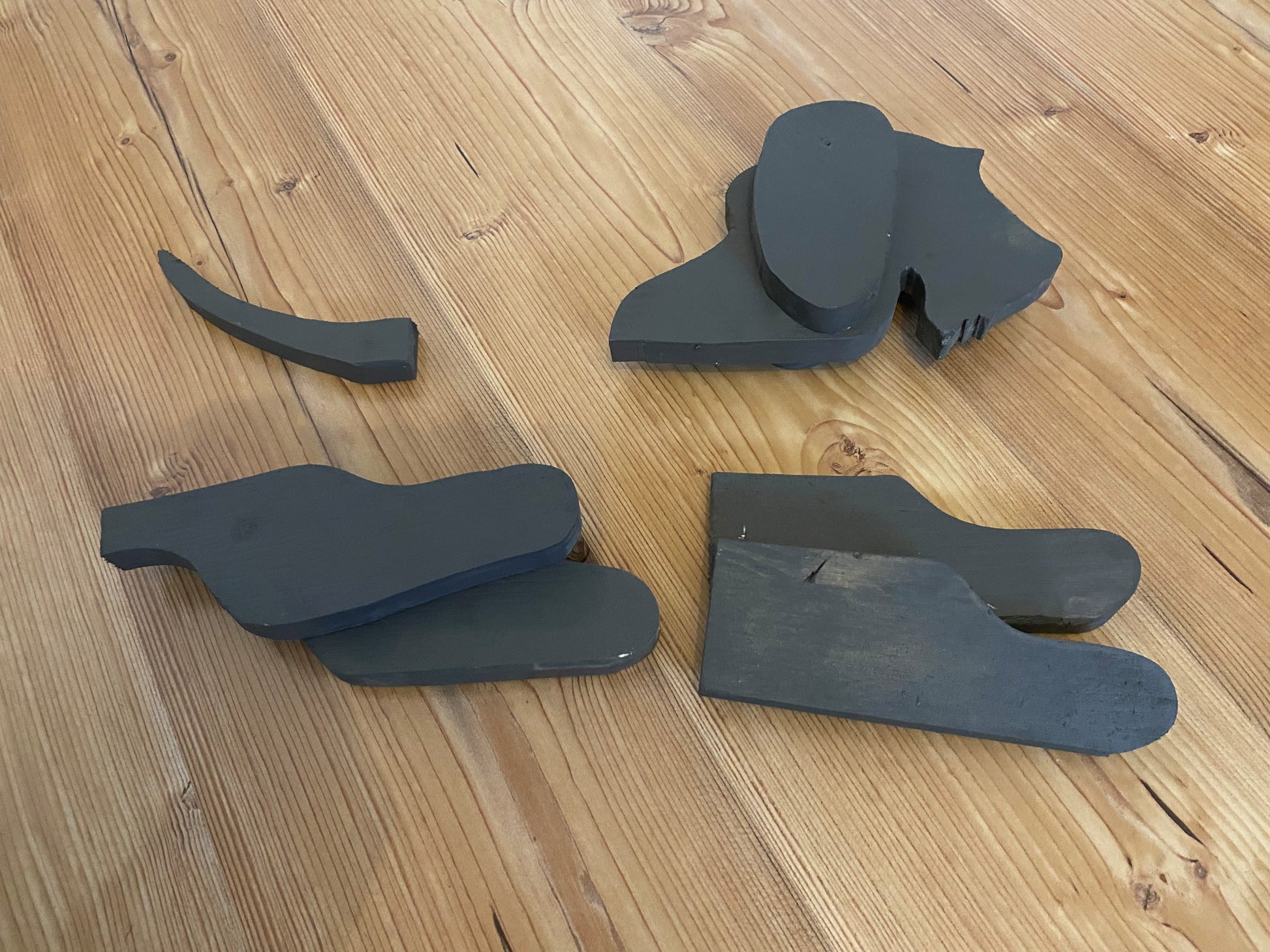 Inhalt des Sets: ein vorgefertigter Kopf mit Hals und Ohren, zwei Vorder- und zwei Hinterbeine und ein Schwanz.